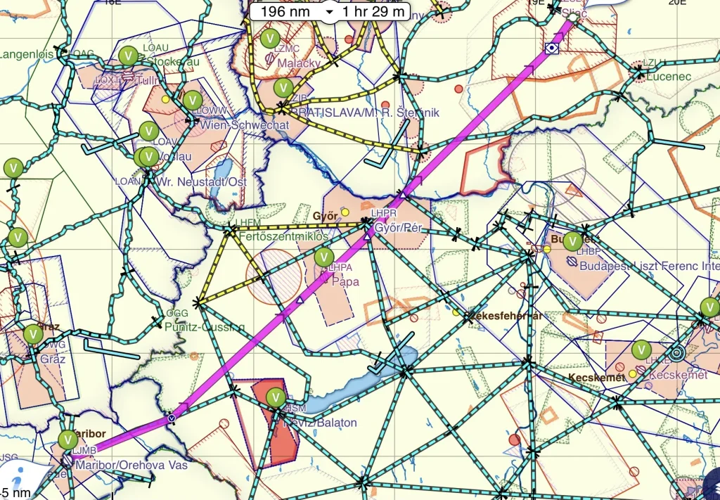 „ Z takých zaujímavostí, počas letu sme vo Francúzsku museli prostredníctvom telefonickej linky pred uvoľnením letového plánu overiť jeho správnosť podania, zadefinovať čas vzletu a potvrdiť, že letový plán budeme po vzlete aktivovať na frekvencii Montpellier info. Veľmi podobný scenár s podávaním a aktivovaním letového plánu sme absolvovali aj v Taliansku. Počasie počas celej dĺžky cesty sme mali luxusné. CAVOK, slnečno s minimom mrakov v okolí, jednoducho nádhera. V Maribore to bola rýchlovka, za tridsať minút sme boli vybavení, natankovaní. Po pristátí nás čakala cisterna s objednaným palivom, dotankovali sme, vyplnili potrebné dokumenty a rolovali na vzlet. Posledná časť trasy už bola ako za odmenu. Keď sme zvládli najnáročnejšie a najvyťaženejšie vzdušné priestory Francúzska a Talianska, na lete cez Maďarsko po čiare až domov sme si už pripadali ako na výhliadke. Na bode Xomba na hraniciach Slovenska sme zrušili letový plán prehodnotili informácie a pokračovali cez bod Sierra Lima Charlie do Očovej. Pre mňa ako IFRového pilota pozerajúceho na svet z kabíny Boeingu letieť takto celý deň naprieč Európou za podmienok VFR cez najviac vyťažené vzdušné priestory bolo viac, ako zaujímavé. Či už s ohľadom na organizáciu letu, lokálne špecifiká, sledovanie priestorov a počasia, ale aj samotný let. Obdivujem pilotov, ktorí takto lietajú bežne.”